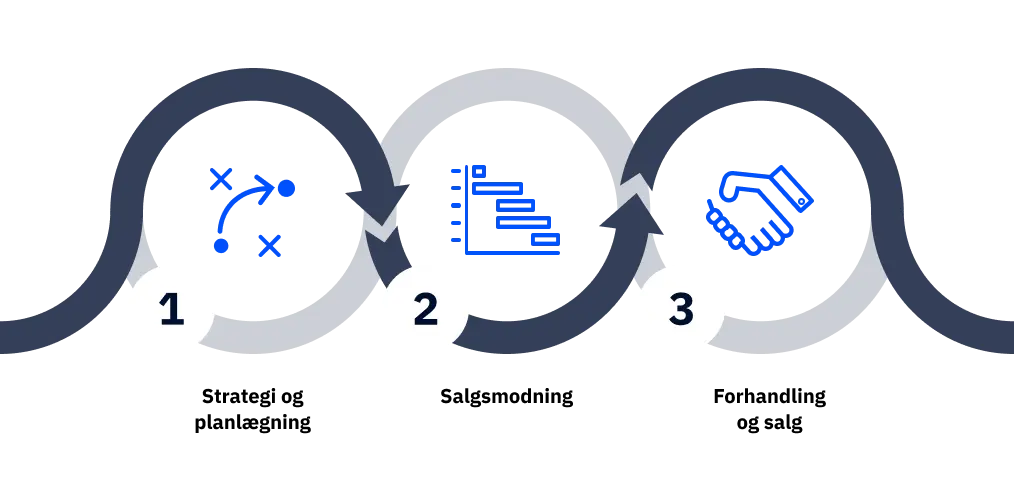 Ejerskifte og virksomhedsoverdragelse er en proces, der kan inddeles i tre hovedfaser. Læs mere om de tre faser her.