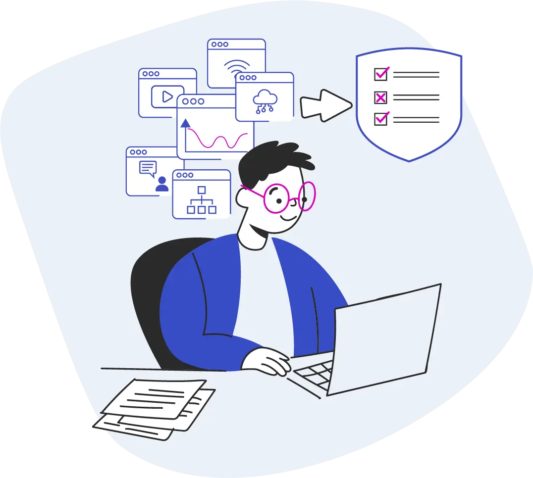 Med Systemoverblikket får I et skræddersyet overblik over, hvilke systemer og data virksomheden anvender, og konkrete anbefalinger til, hvordan I beskytter dem.