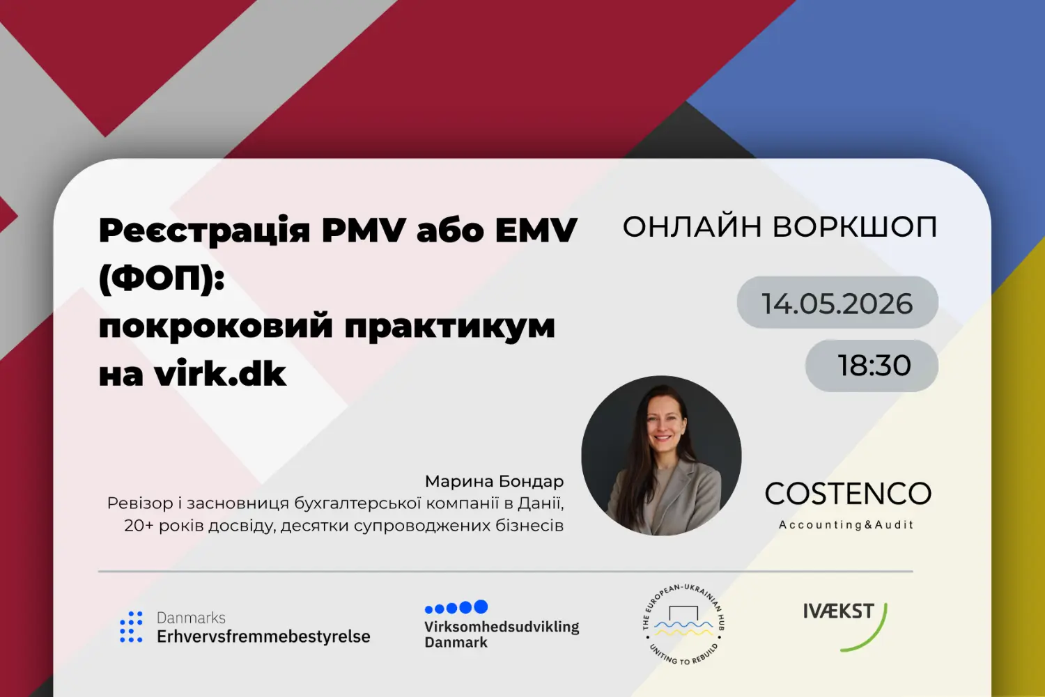 Цей воркшоп — повністю практичний: весь процес реєстрації буде показано наживо, від входу на virk.dk до отримання CVR-номера. Не теоретично, а саме так, як це виглядає на екрані — крок за кроком. Ви побачите логіку кожного поля, зрозумієте, де найчастіше виникають помилки, і зможете повторити це самостійно вже наступного дня.