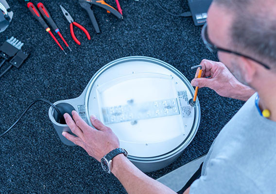 Dette ledte til, at Focus Service Center blev etableret, hvor kunder mod betaling kan indsende defekte produkter til reparation og få udskiftet de moduler, der er i stykker inden for 24 timer. Det sparer både kunden og Focus Lighting tid og penge, og det holder produkterne i brug i længere tid, samtidig med at det minimerer ressourceforbruget.
