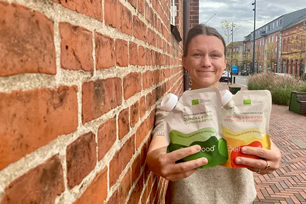 Line Pedersen oplevede et behov på markedet, da hendes hjerneskadede søn Otto fyldte to år. Hun savnede at servere et sundt sondemåltid med rigtig mad. Med hjælp fra SMV:Grøn har Line kunnet udvikle et vegansk sondemåltid og gjort et måltid mere klimavenligt i hendes virksomhed Bellyfood A/S.