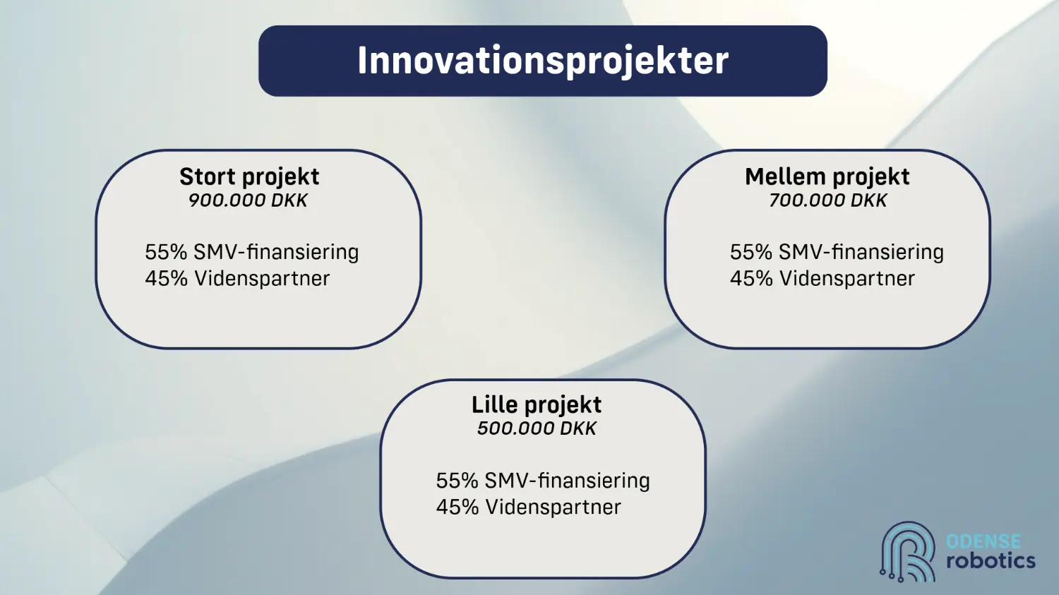 Det er et krav, at alle virksomheder i projektet er enige om tilkøbet af Odense Robotics projekt-guide.
